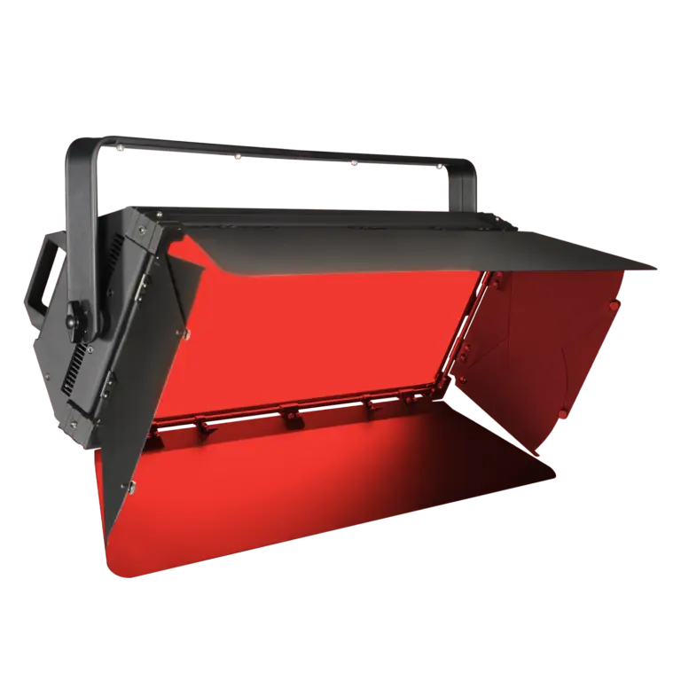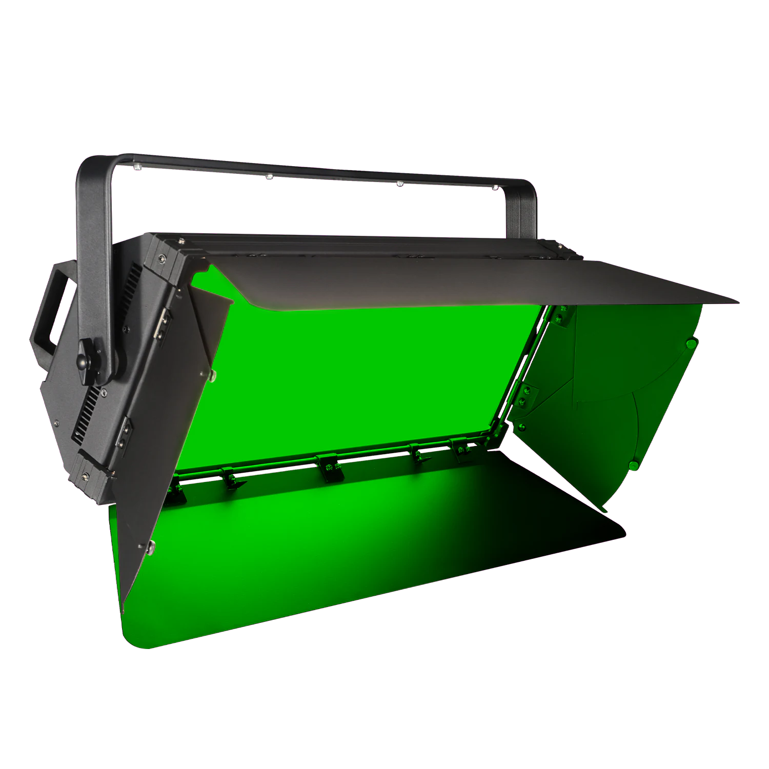 Solar Panel 300C is a 300Watt RGBWW colored LED studio panel light. WW stand for warm white and cold white. With the RGB LEDs, this fixture just come with versatile color mixing, even and wide wash effect, perfect control lighting area through eight leaf barndoor. Moreover, CRI 95, 98 TLCI brings perfect light quality. It is specially designed for theatres, TV studios, video shootings.