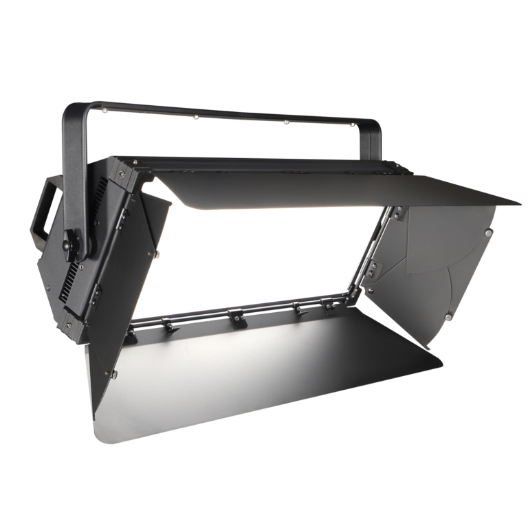 Solar Panel 300T is a 300Watt tunable white LED studio panel light. It comes with even and wide wash effect, perfect control lighting area through eight leaf barndoor. Moreover, equiped with 300Watt warm white + 300Watt cool white high output LEDs, CRI 95, 98 TLCI brings perfect light quality. It is specially designed for TV studios, video shootings.